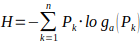 donde los logaritmos se pueden tomar en una base arbitraria, pero siempre la misma, y donde Pk=0 se toma como Pk*logPk=0. El valor H se denomina entropía de un determinado esquema finito de acontecimientos (véase C. Shannon, “Mathematical Theory of Communication”. Colección de traducciones “Transmisión de señales eléctricas en presencia de perturbaciones”. M 1953, y A. Y. Khinchin, “The Notion of Entropy in Probability Theory”. Revista “Avances en Ciencias Matemáticas”. Т. 3. 1953). Tiene las siguientes propiedades: